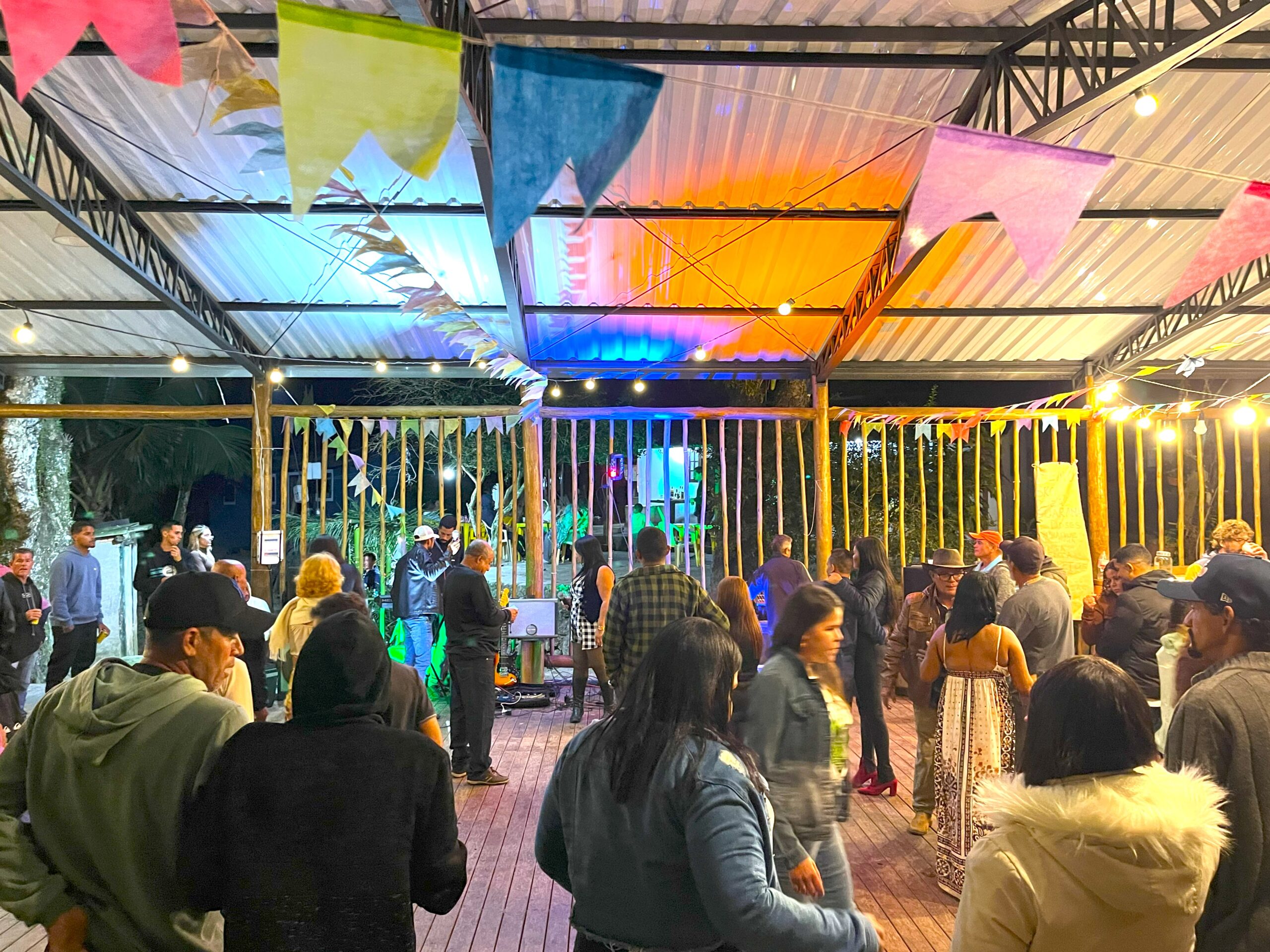 visitantes, em um ambiente acolhedor e festivo.