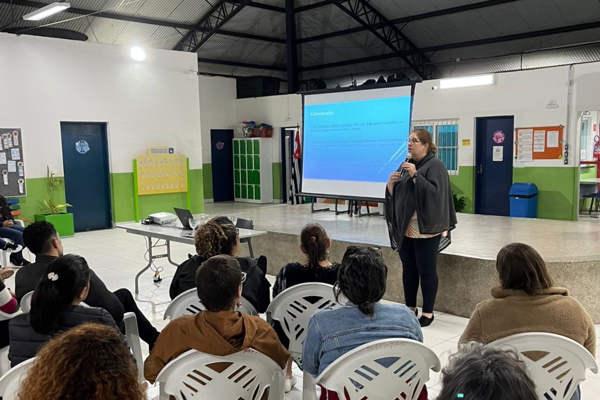 A psicóloga do CAPI, Mônica Nascimento, apresentou temas essenciais ao desenvolvimento das crianças, como autonomia e rotina no dia a dia.