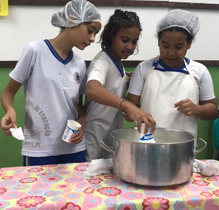 Ao final, os alunos degustaram o iogurte produzido, acompanhado de frutas, e levaram para casa a receita do experimento, compartilhando com a família o conhecimento adquirido.