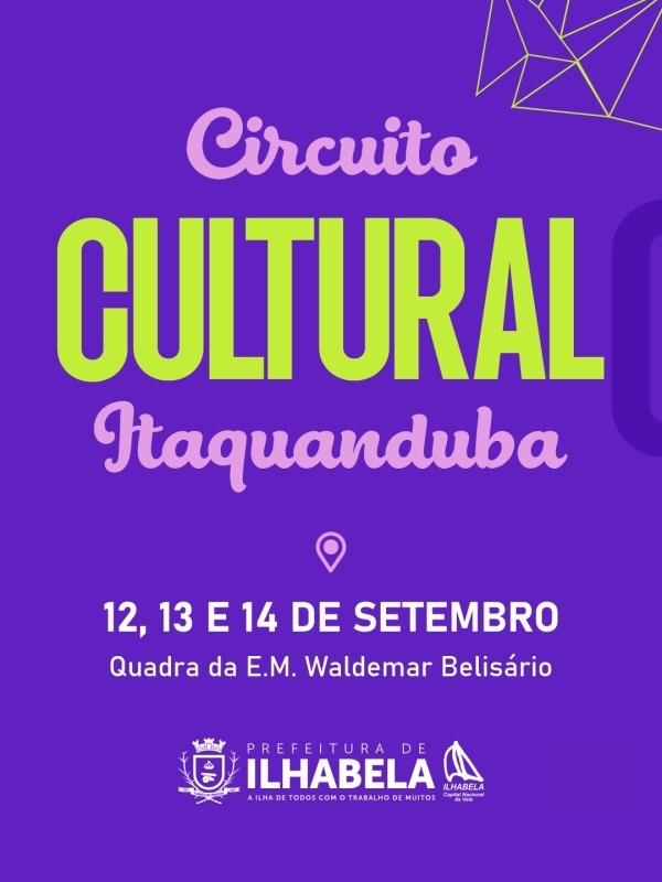 A Prefeitura de Ilhabela realiza mais uma edição do Circuito Cultural, desta vez na quadra da Escola Municipal Waldemar Belisário, no bairro do Itaquanduba. O evento será realizado já nesta sexta-feira (12) e permanece até o domingo (14), sempre a partir das 20h, com entrada gratuita.
