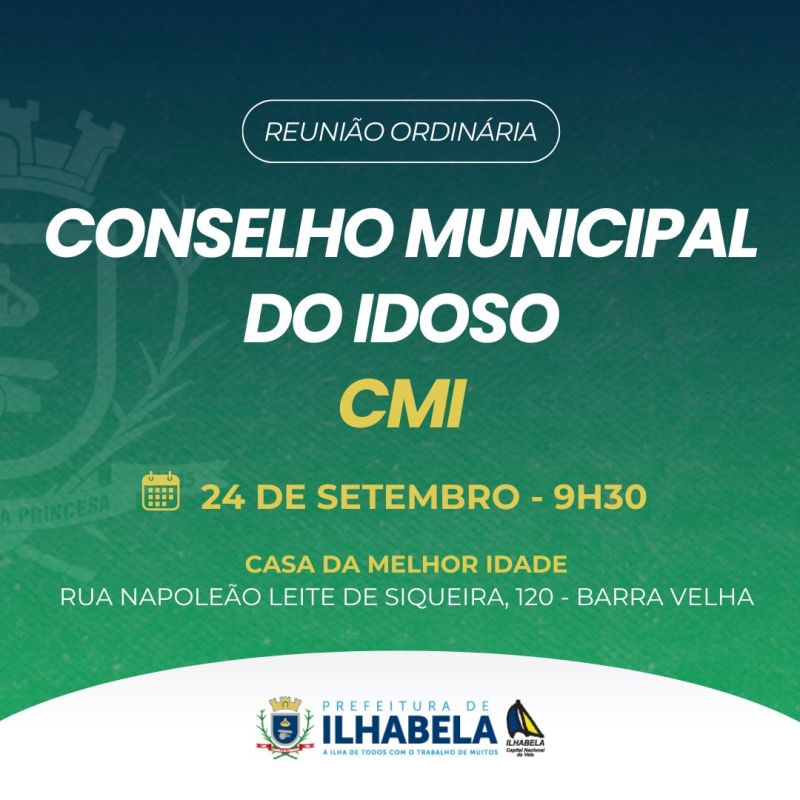 O Conselho Municipal do Idoso de Ilhabela (CMI) realiza reunião presencial na quarta-feira (24), às 9h30, na Casa da Melhor Idade, localizada na Rua Napoleão Leite de Siqueira, nº 120 – Barra Velha. O encontro é aberto ao público e todos são convidados a participar.
