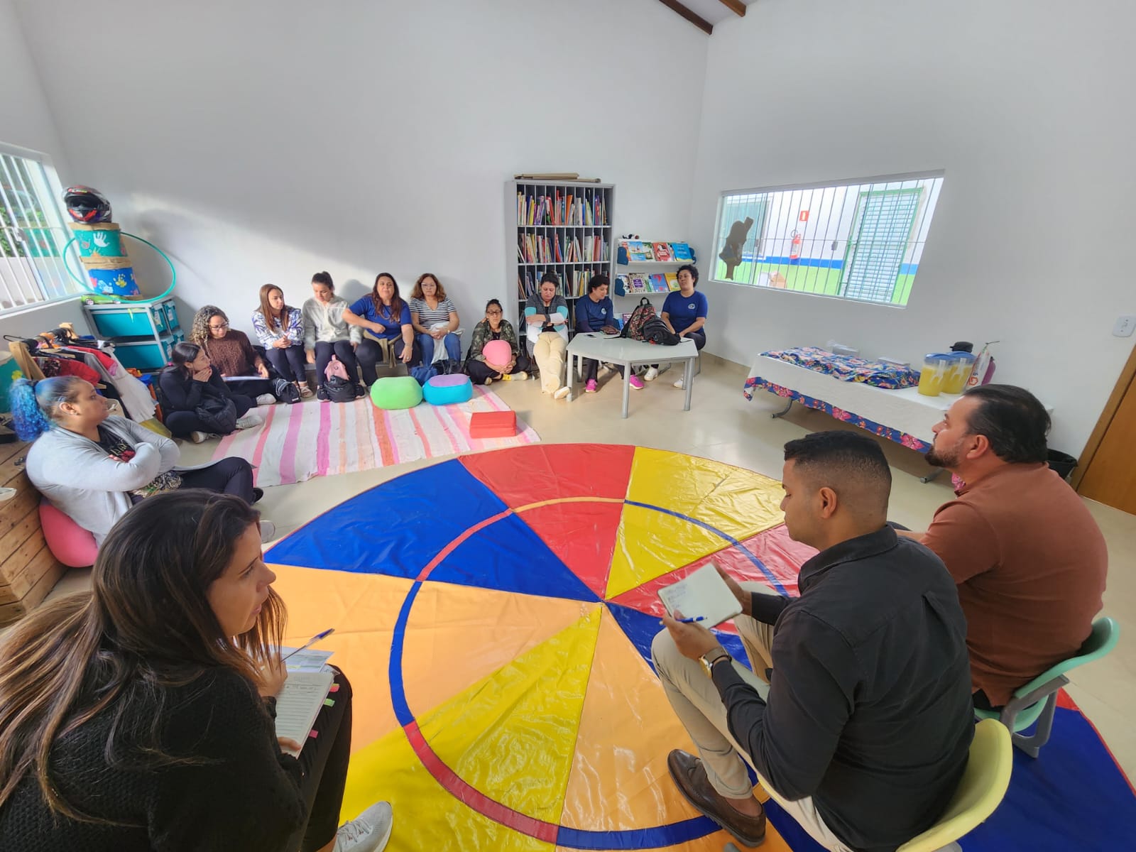 As reuniões que já foram realizadas em etapas anteriores reuniram contribuições e sugestões dos Auxiliares de Primeira Infância sobre o cotidiano escolar, condições de trabalho e estratégias de aprimoramento das práticas pedagógicas.