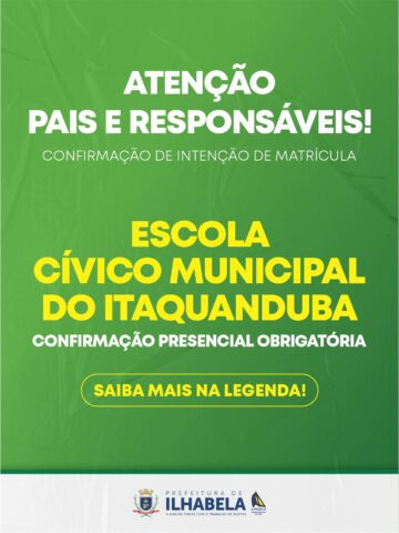 A Prefeitura de Ilhabela, por meio da Secretaria de Educação, finalizou a pesquisa de intenção de matrícula para o ano letivo de 2026 nas Escolas Cívico-Municipais. A consulta foi destinada a alunos residentes em Ilhabela e matriculados no Ensino Fundamental da rede pública.