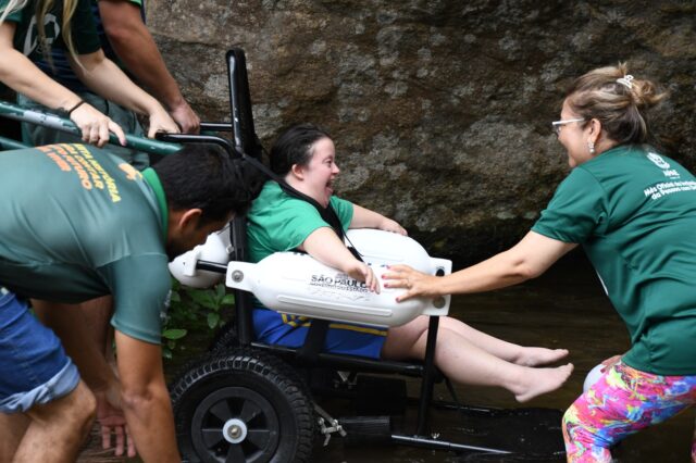 Sol, mar e cachoeira: a combinação perfeita para aproveitar a estação mais quente do ano. Em Ilhabela, esses atrativos naturais e turísticos também podem ser desfrutados pelas pessoas com mobilidade reduzida, temporária ou permanente, por meio da disponibilização gratuita do serviço de cadeiras anfíbias que permitem a entrada até a água.