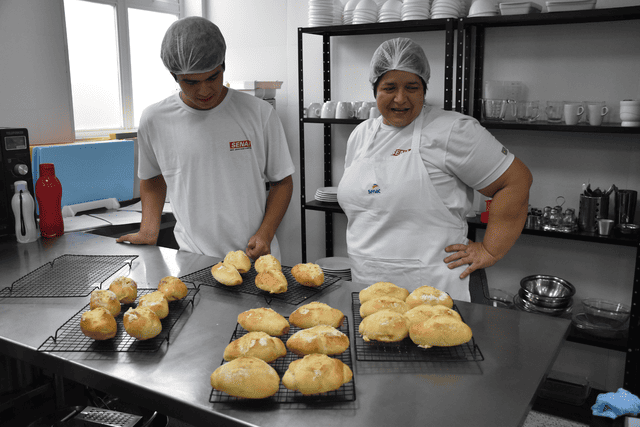 No processo de panificação, os alunos aprendem todas as etapas necessárias até o produto final, o que inclui o balanceamento, pesagem, preparo, divisão, modelagem, fermentação, cocção, resfriamento, acabamento e embalagem.
