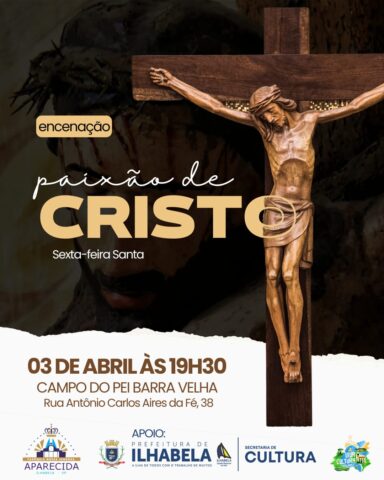 Organizado pela Paróquia Nossa Senhora Aparecida, o espetáculo é gratuito e conta com o apoio da Prefeitura de Ilhabela, por meio da Secretaria de Cultura, e convida o público a acompanhar os últimos passos de Jesus Cristo, passando pela Paixão, Morte e Ressurreição.